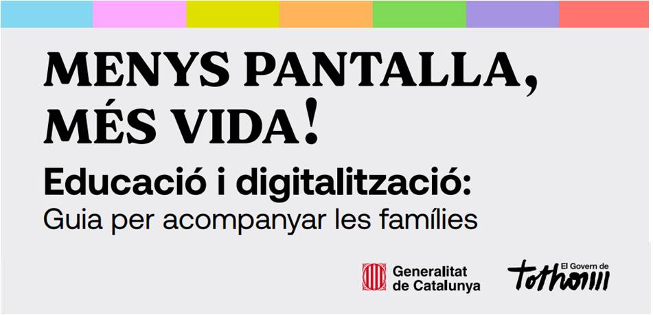 El Pla de digitalització responsable interpel·la tota la comunitat educativa, i especialment les famílies. Per aquest motiu, hem elaborat una guia per acompanyar-les en el procés de digitalització responsable dels seus fills i filles. Guia per a les famílies per una digitalització responsable