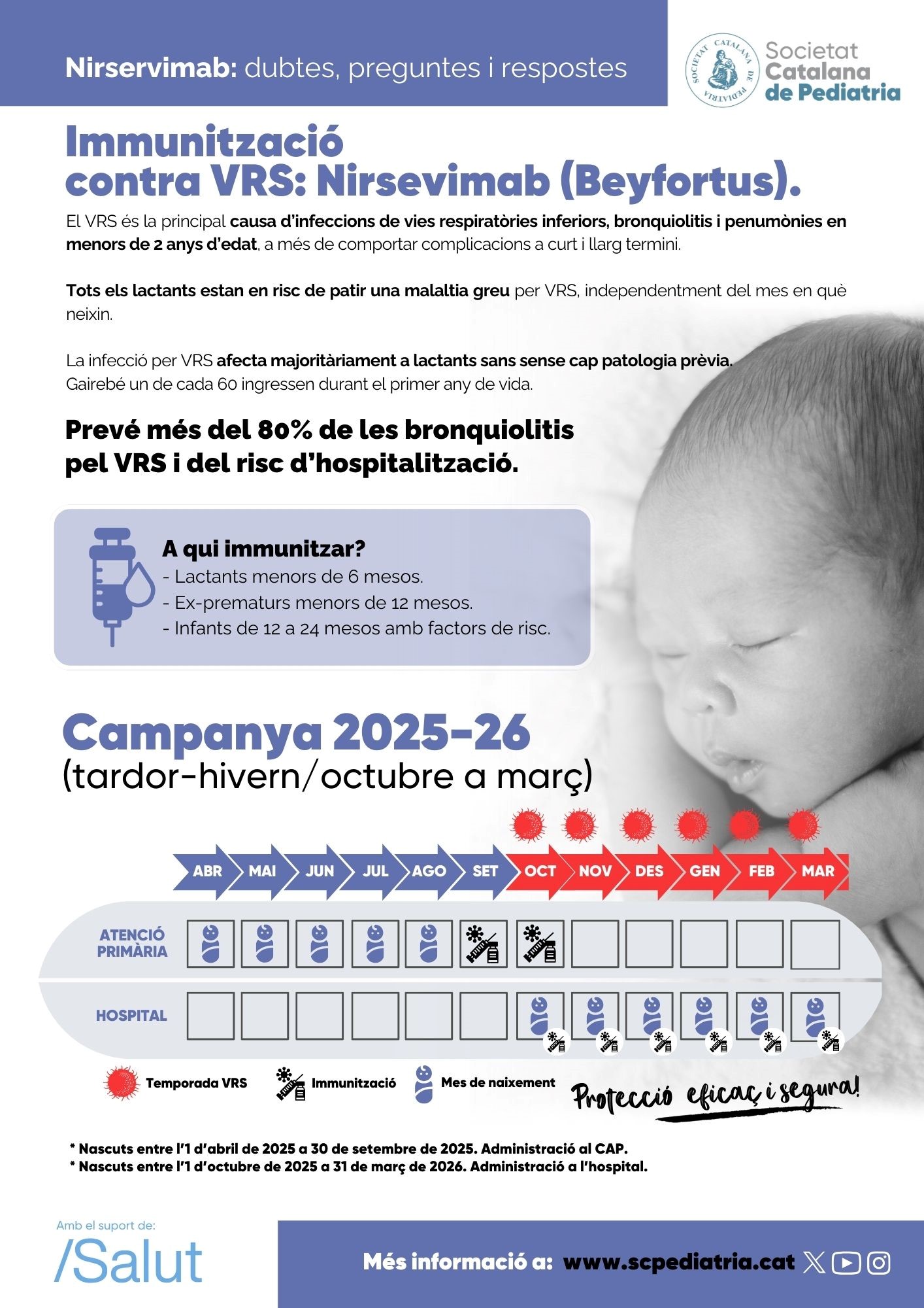 Infografia per a la ciutadania sobre la campanya d’immunització contra el VRS en infants 2025-2026 elaborada pel Departament de Salut